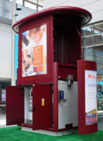 Betonowa komora stacji w części jest zagłębiona w grunt, co pozwala zminimalizować zewnętrzne gabaryty a jednocześnie umożliwia łatwy dostęp do obsługi stacji realizowany w części nadziemnej. Obudowa tego typu – przy zastosowaniu odpowiedniego koloru poszycia oraz atrakcyjnych treści w oknach reklamowych – może stać się prawdziwą ozdobą miasta. Do wykonania części metalowej stosowane są bardzo odporne na korozję blachy pokryte stopem cynku i aluminium (alucynkowe). Dach wykonany jest z żywicy epoksydowej.